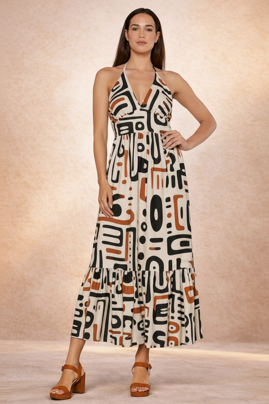 Vestito Lungo Afro Sand Balze Halter - Baba Design