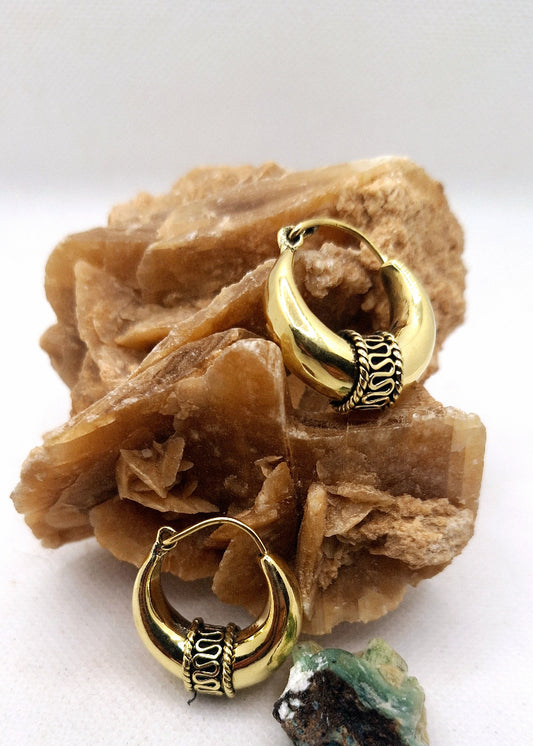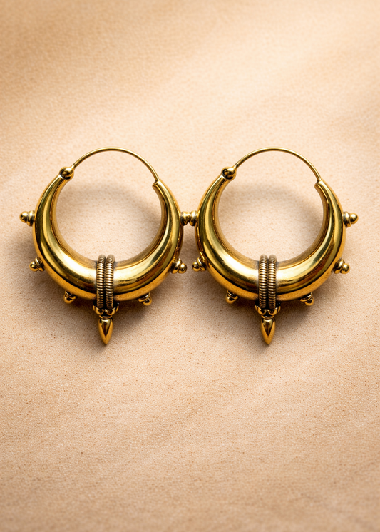 Orecchini “Moon Warrior” – Cerchi bombati con punta tribale
