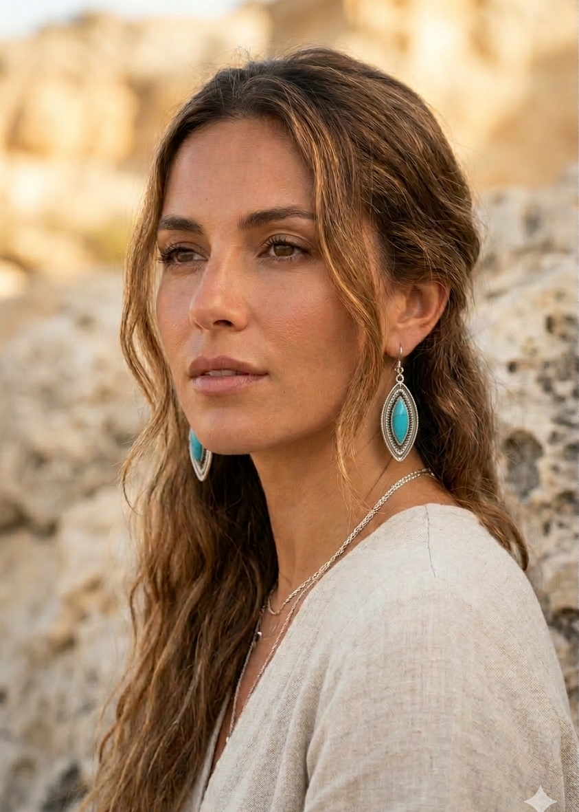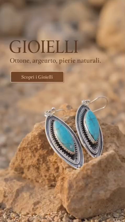 Ogni paio è unico e irripetibile grazie alle naturali variazioni cromatiche del turchese. La lavorazione artigianale garantisce qualità superiore e attenzione ai dettagli. Ideali come regalo speciale o per arricchire la tua collezione di gioielli boho-tribal.