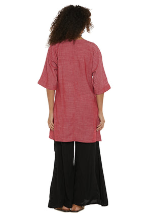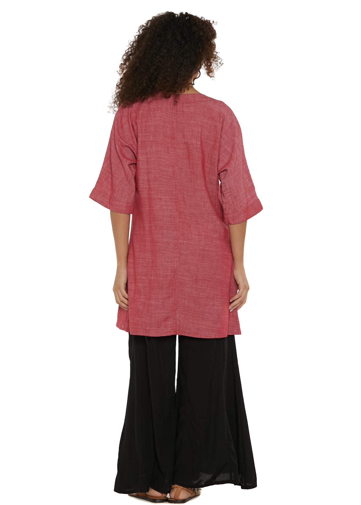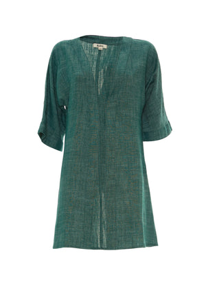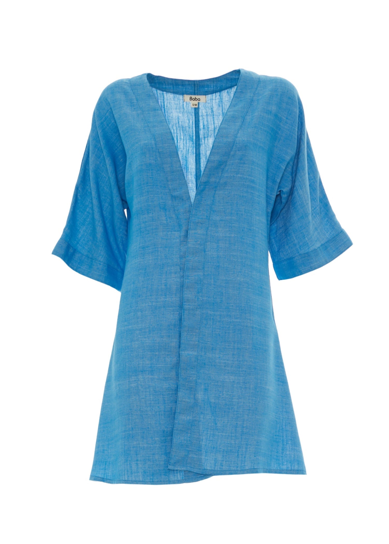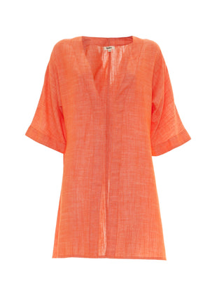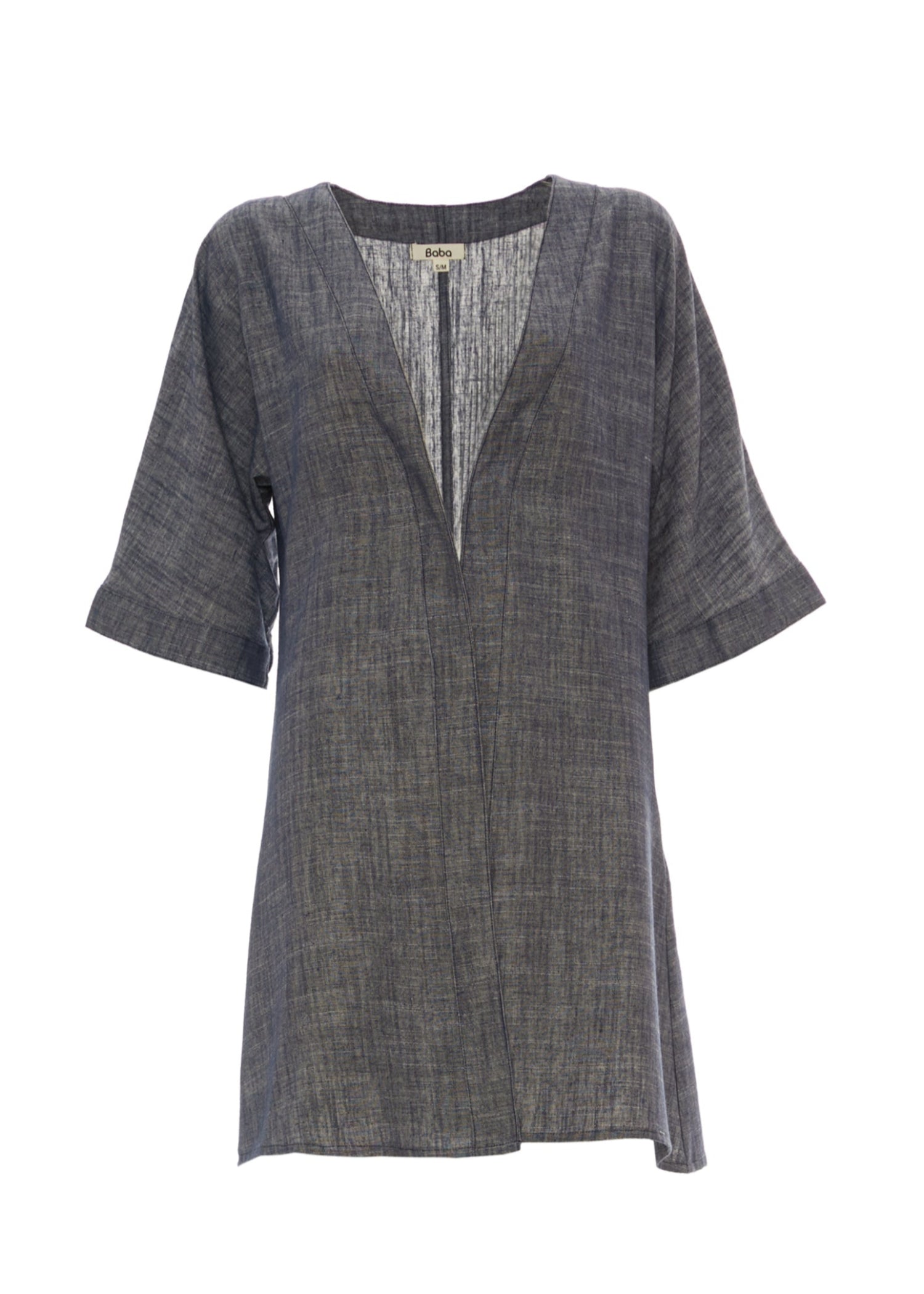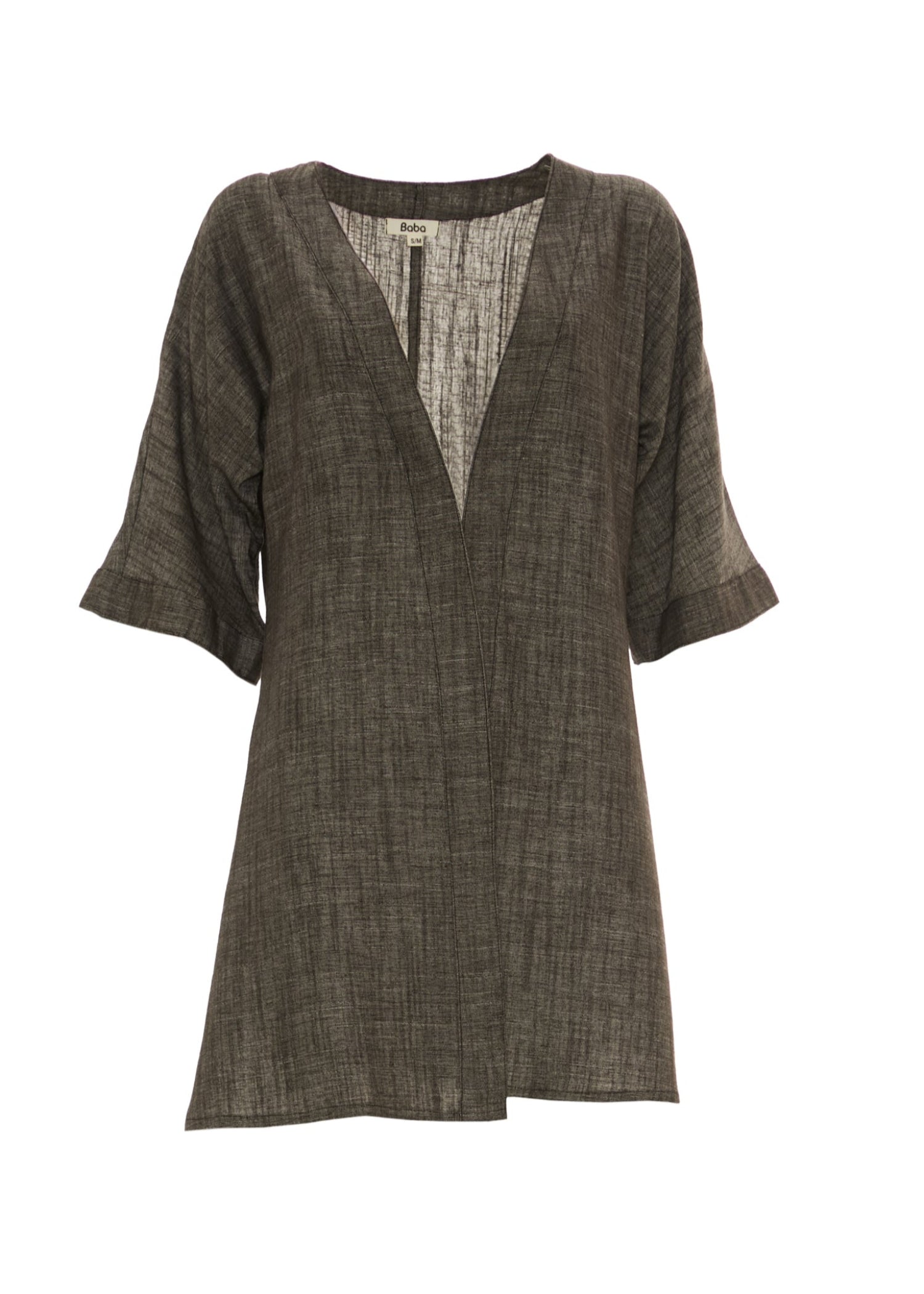 Kimono in lino e cotone, realizzato in tinte monocromo. Taglio dritto e manica larga a 3/4, perfetto per sdrammatizzare ogni outfit.