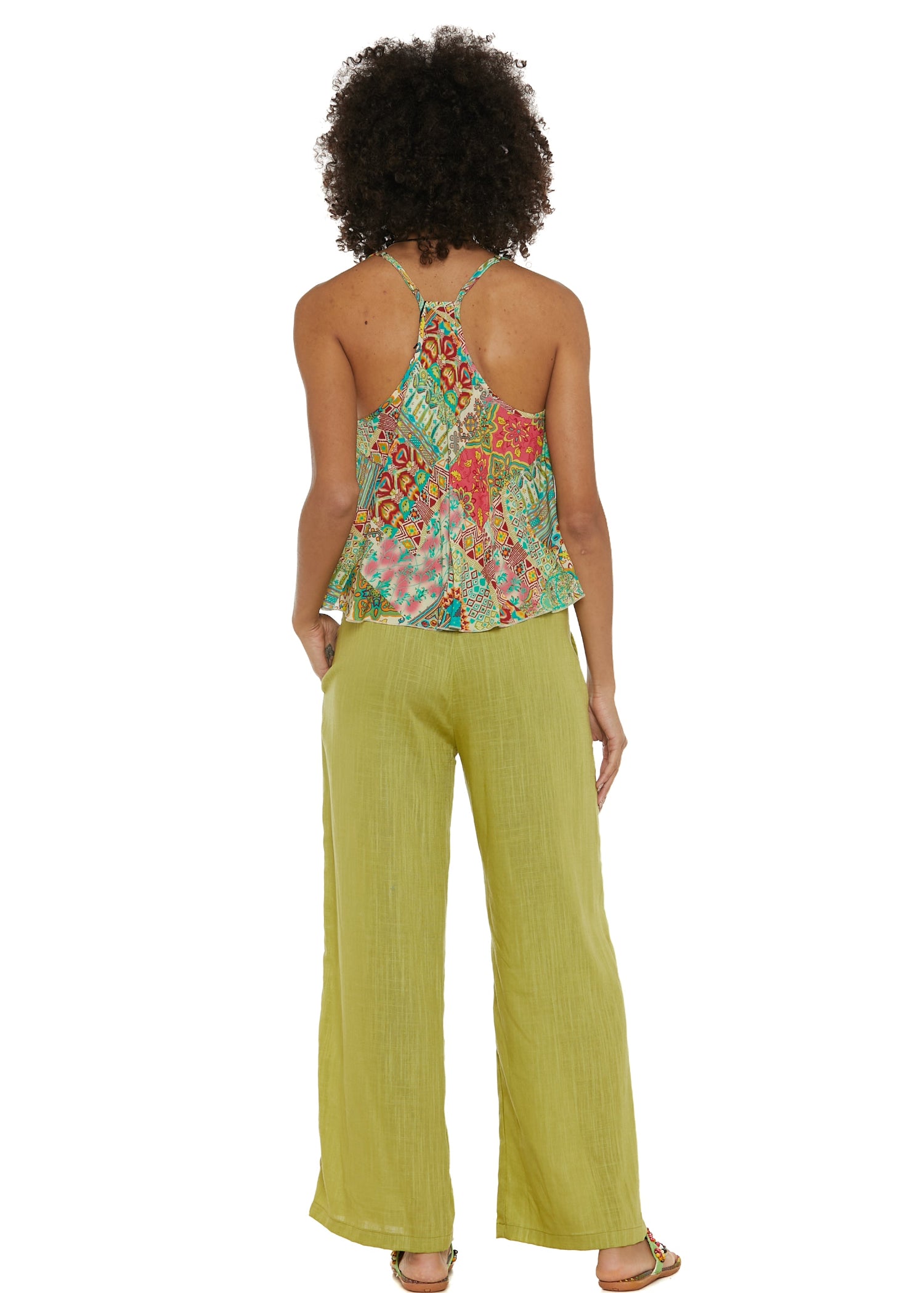 Canottiera con taglio ampio e svasato per massimo comfort. Dotata di spalline sottili regolabili per una vestibilità personalizzata. Lo scollo posteriore originale aggiunge un tocco divertente e distintivo a questo capo estivo firmato Baba Design.