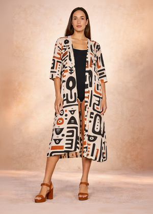 Kimono Lungo Afro Sand Stampa Etnica - Baba Design
