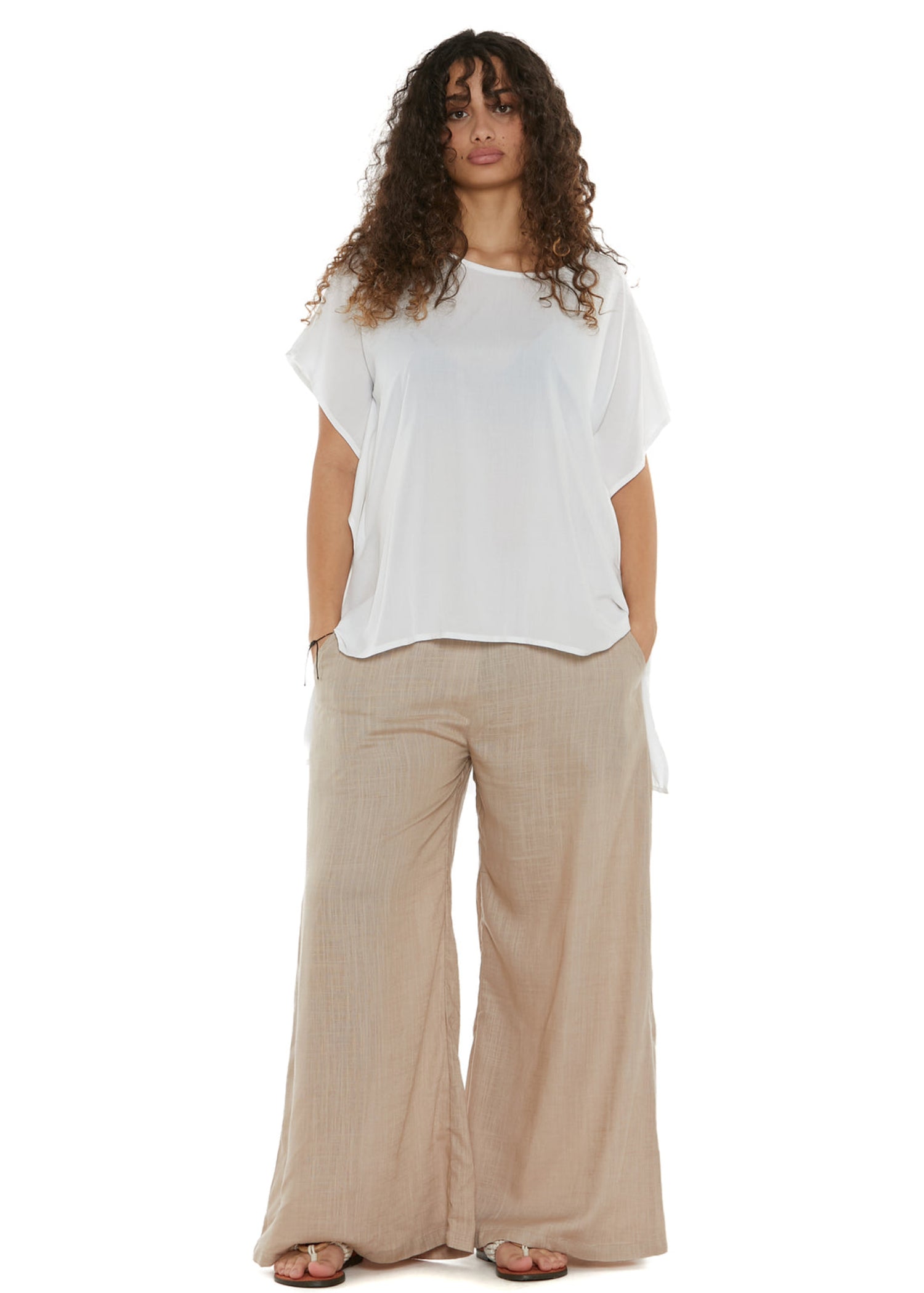 Pants in fresh linen and cotton from the curvy line by Baba Design, with a soft cut and front pockets. The combination of natural fabrics guarantees comfort and breathability. A garment that offers a relaxed style suitable for different occasions.