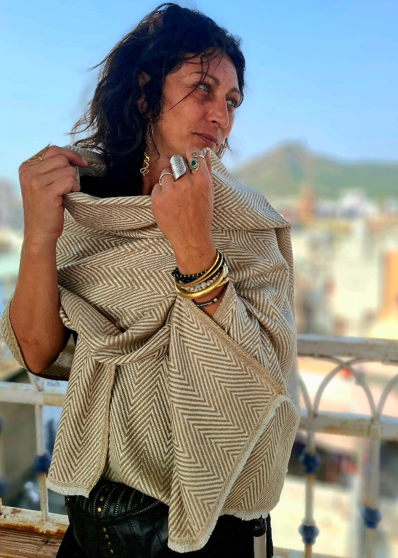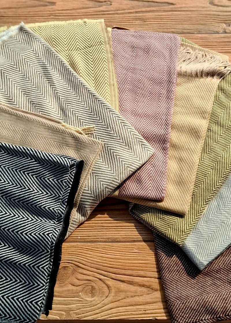 Warm yet lightweight, it's ideal for wearing over the shoulders, wrapped around the neck, or as a shawl in cooler seasons. A timeless accessory, designed for those who love quality, natural materials, and a simple yet soulful style.