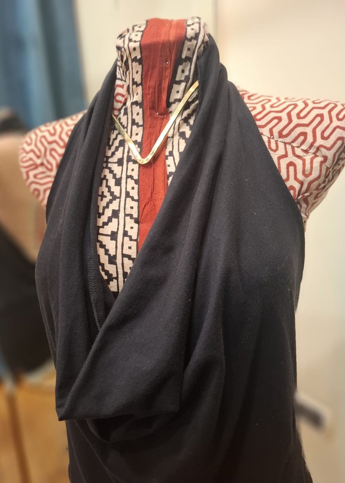 It goes perfectly with long skirts, soft trousers or ethnic leggings.