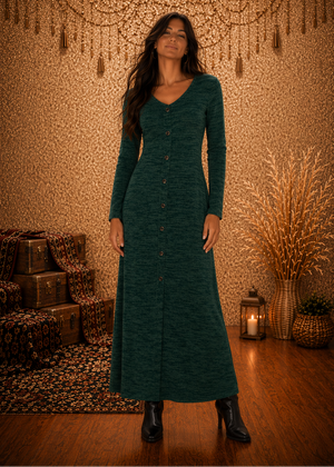 Vestito Lungo Concrete Jungle | Tinta Unita Scollo V Bottoncini Tono su Tono – Baba Design