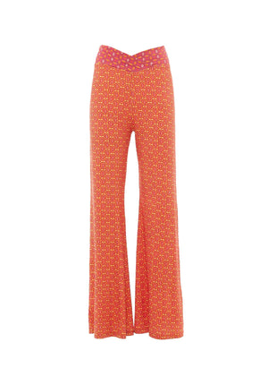 Pantalón largo palazzo con aplicación de banda elástica en la cintura.