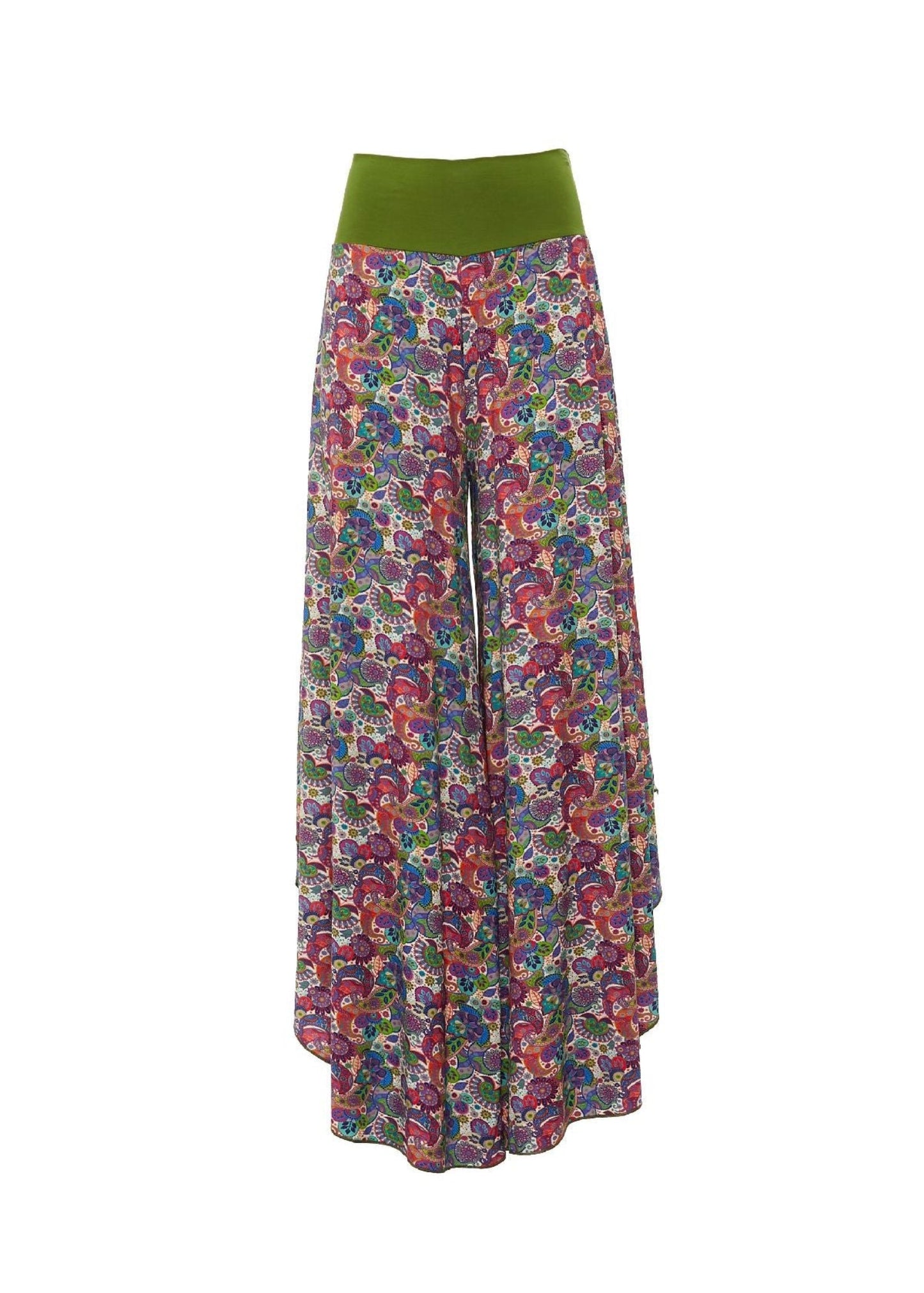 ¡Vive el ambiente de fiesta con estos fantásticos pantalones de la línea curvy de Baba Design! Corte asimétrico, línea con curvas, entre las más de moda, y un patrón psicodélico para un toque de extravagancia divertida. ¡La cintura elástica garantiza la máxima comodidad, asegurando que no te perderás la fiesta!