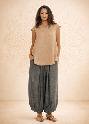 El jersey Bamboo Plant de Baba Design es una prenda versátil y de calidad, caracterizada por un corte acampanado y una pequeña manga que cubre los hombros. Es suave para la piel y garantiza una sensación de confort. Una gran elección para cualquier ocasión.
