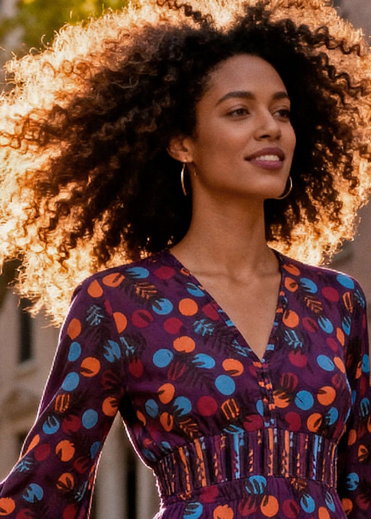 Il vestito svasato Mural Visions di Baba Design è perfetto per esaltare le curve femminili grazie alla sua elegante linea a sbuffo e allo scollo a v. Con il suo pattern retrò e la vita fasciata, dona un look super cool e alla moda.