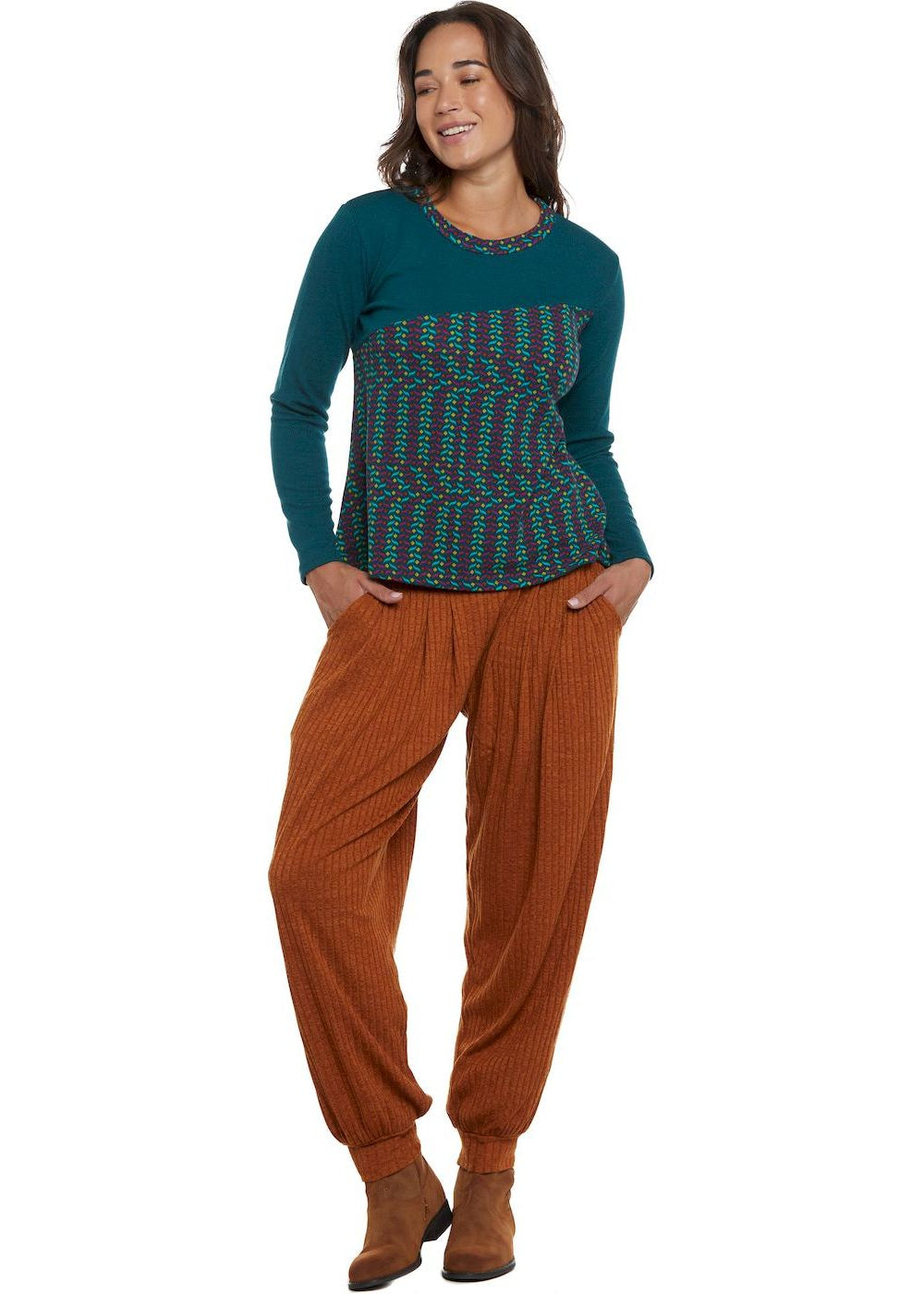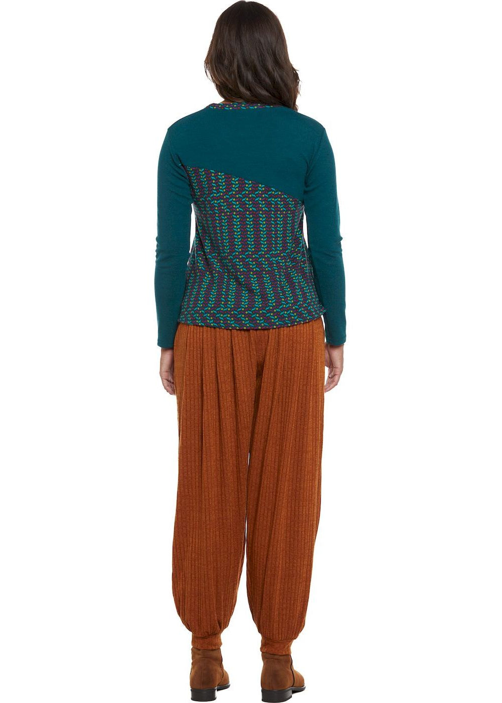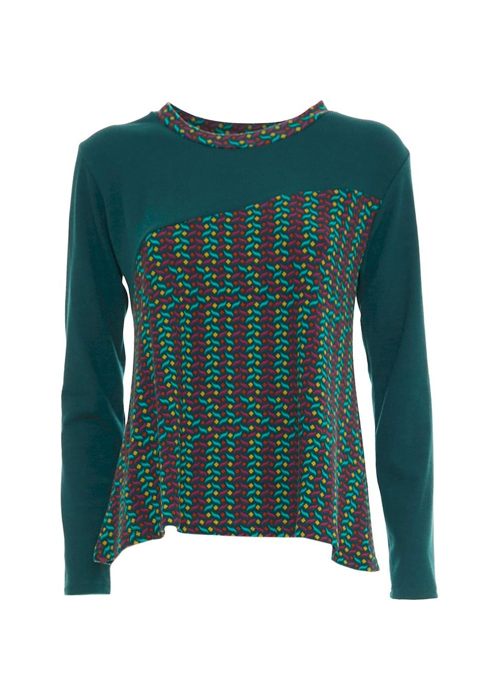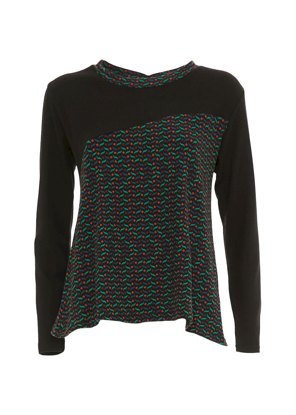 Maglia della linea curvy di Baba Design che celebra lo stile con personalità! Scollo rotondo comodo e versatile. Il design gioca con l'accostamento di pattern monocolore e astratto, creando un look street art che cattura lo sguardo.