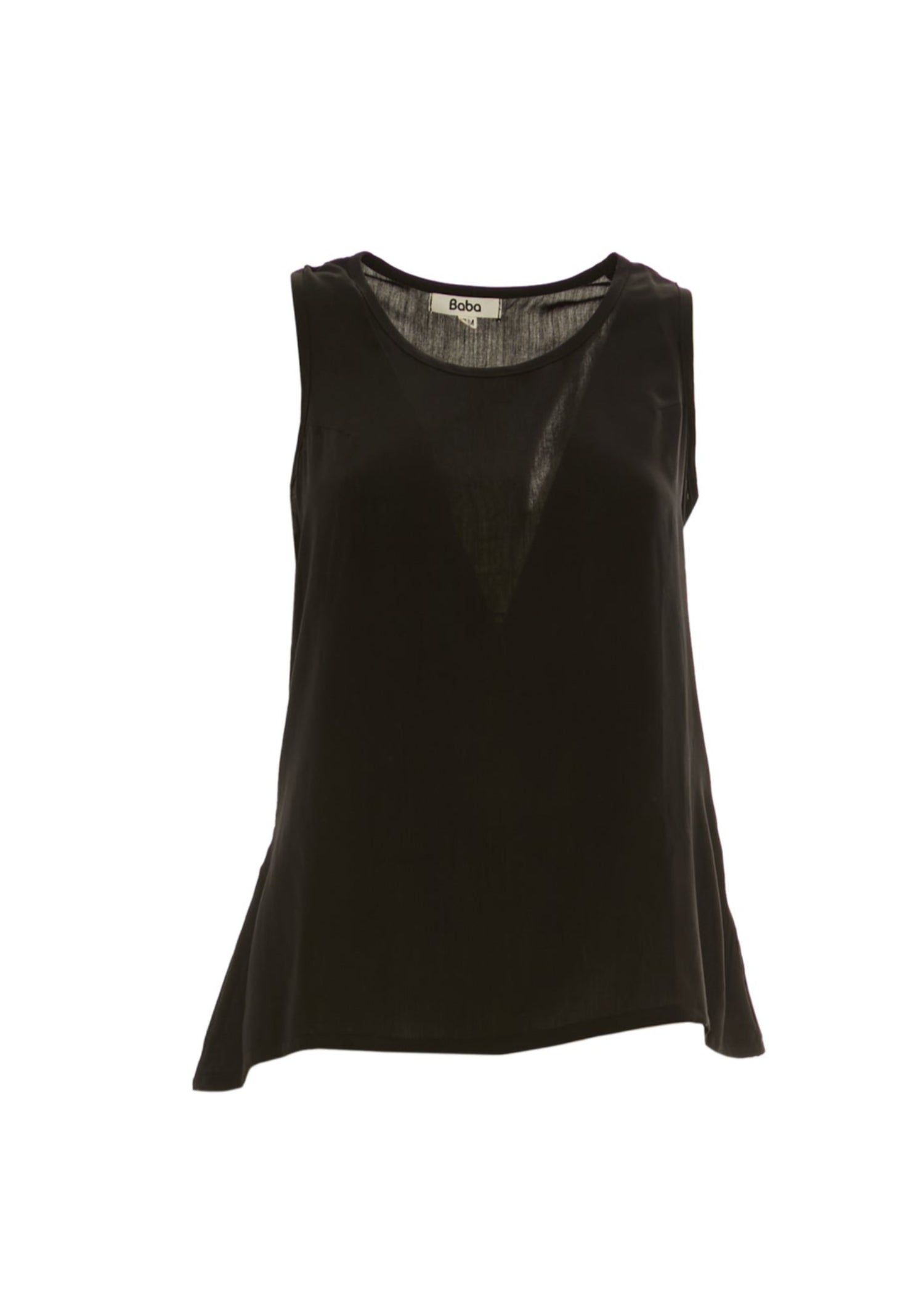 Comodità e freschezza con questa versatile canotta di Baba Design! Il taglio è svasato, la spallina larga, e lo scollo anteriore rotondo. Lo scollo posteriore le da un look sportivo.