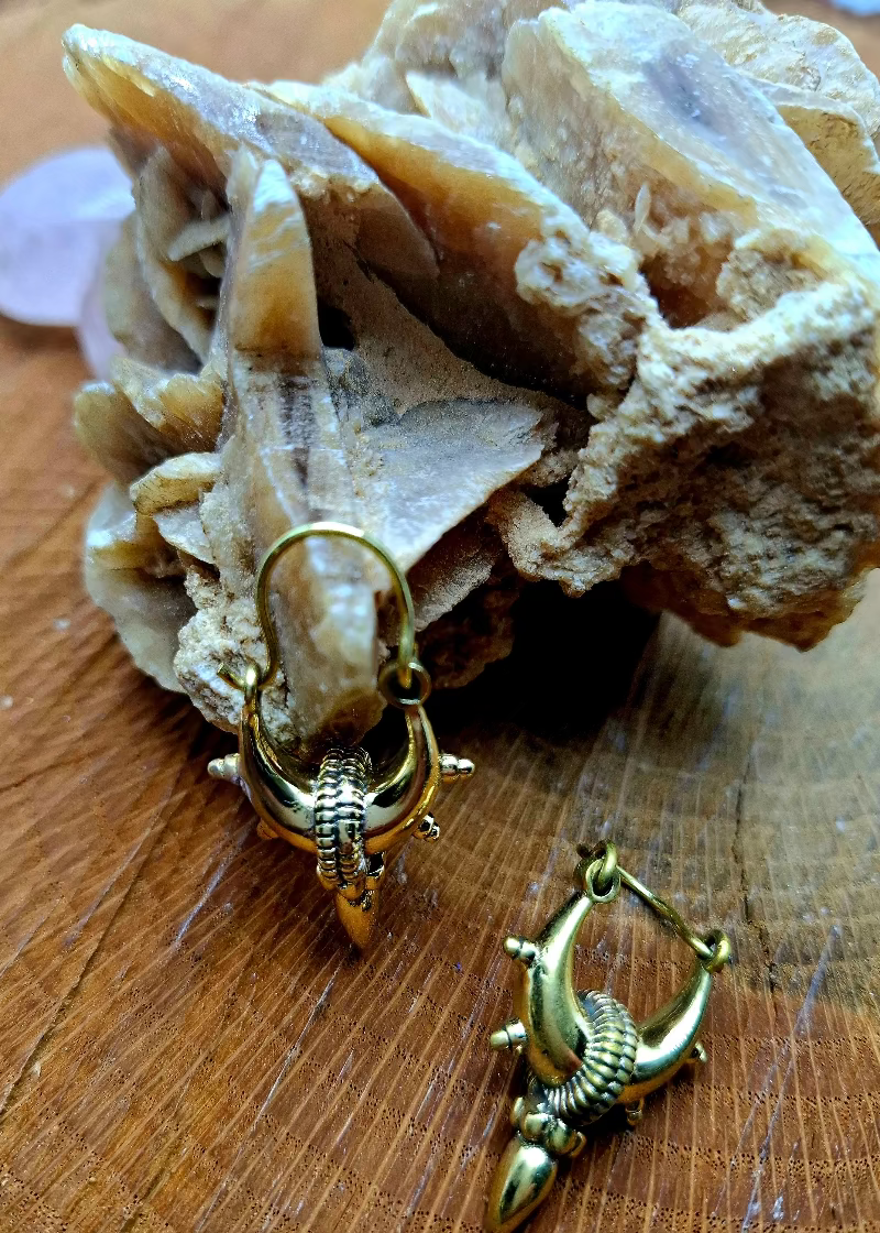 Il loro design bombato, arricchito da una decorazione a punta nella parte inferiore, richiama i gioielli tribali tradizionali, donando carattere e forza a chi li indossa.