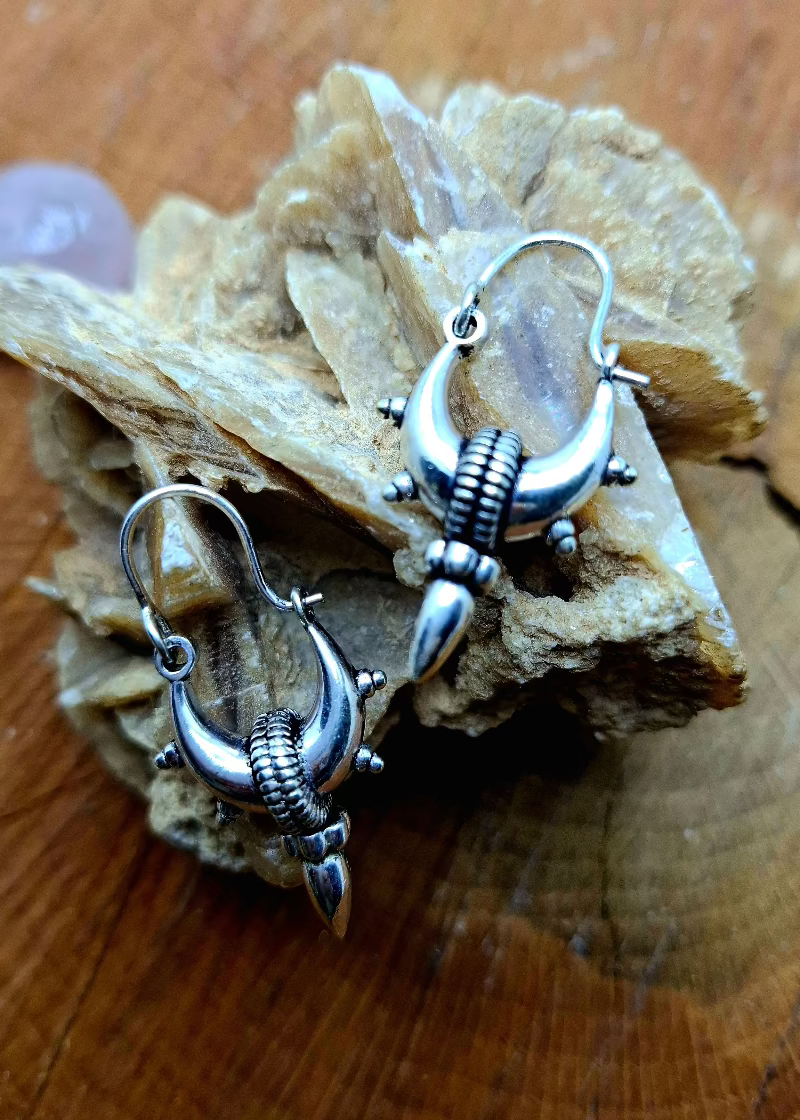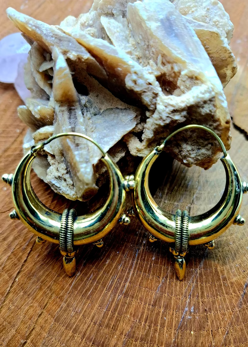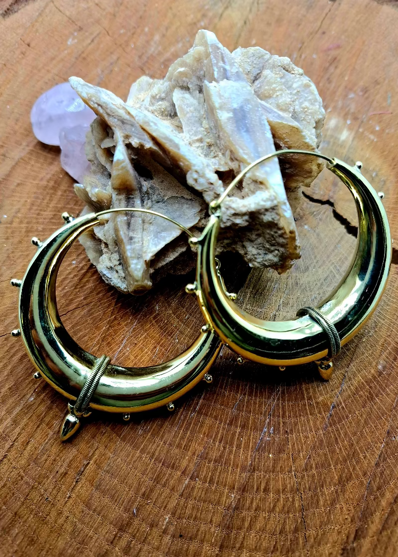 Orecchini “Moon Warrior” – Cerchi bombati con punta tribale