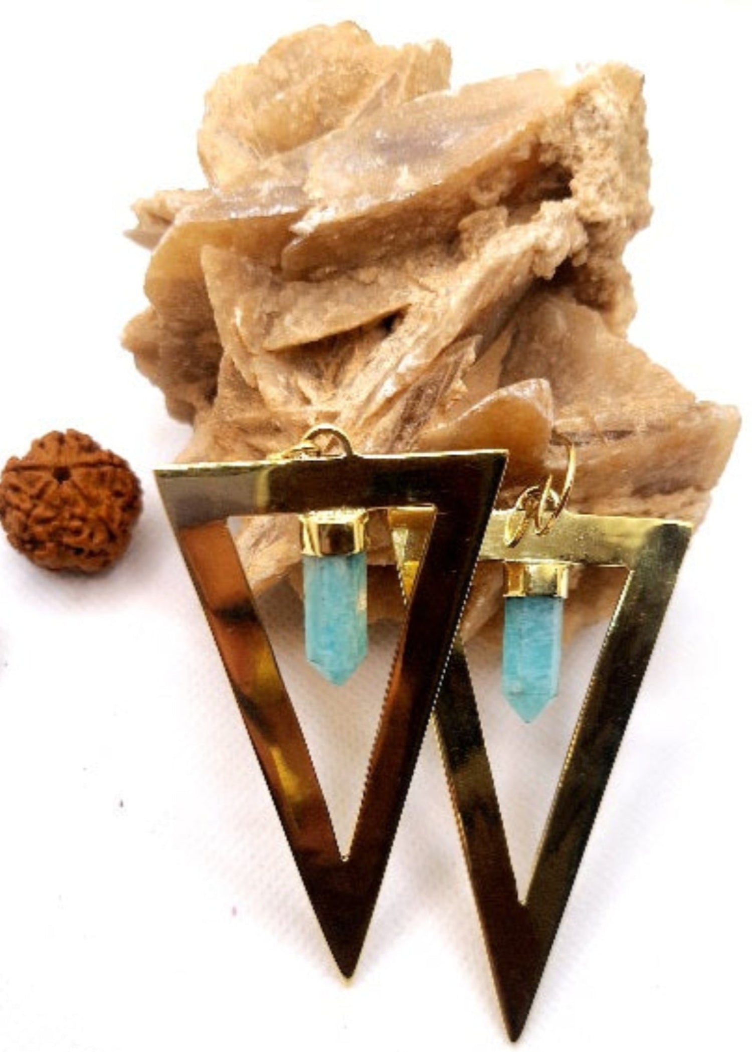 Gli Orecchini Triangolo di Cristallo uniscono la forza della geometria sacra all’energia vibrante delle pietre naturali.
