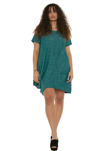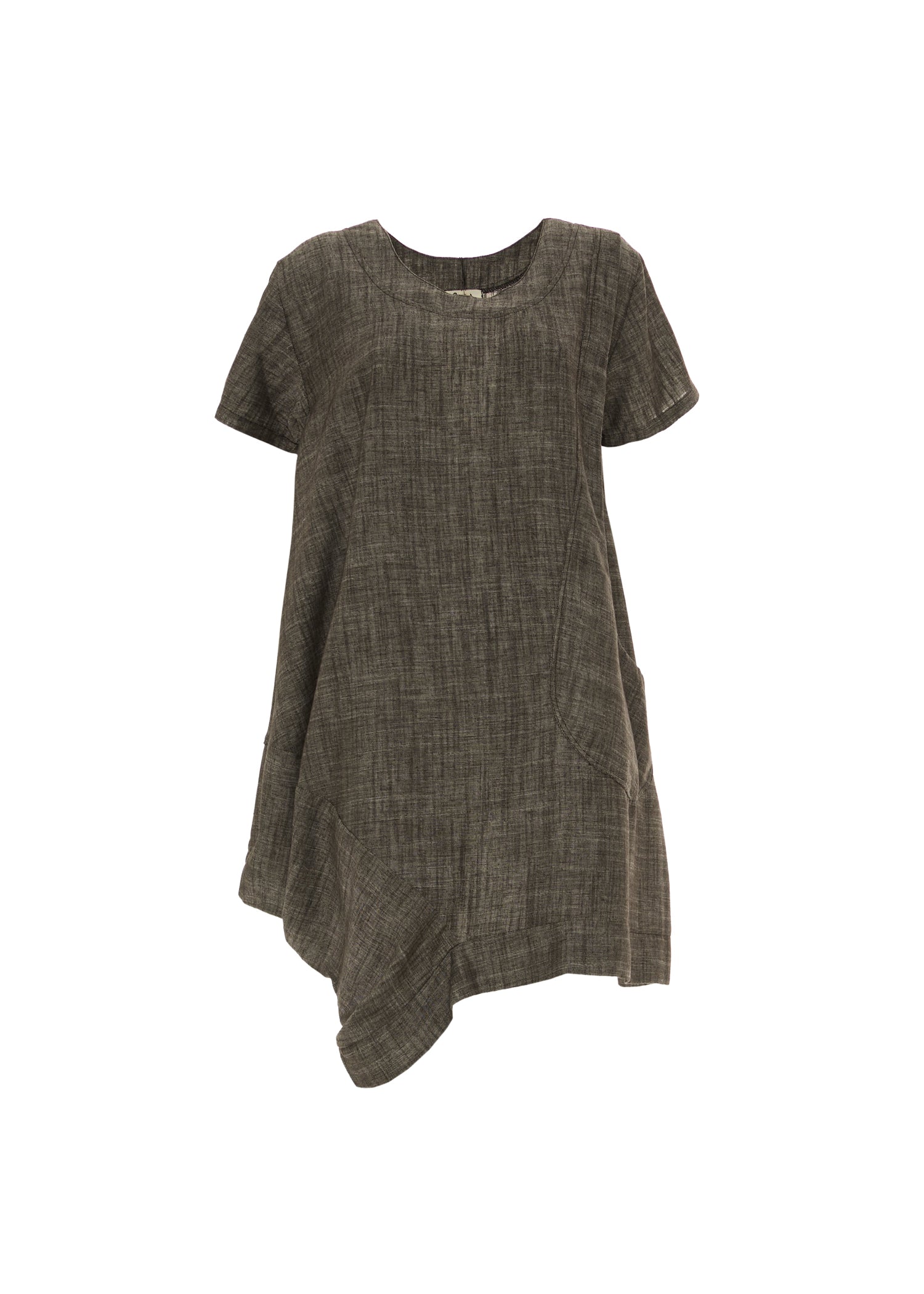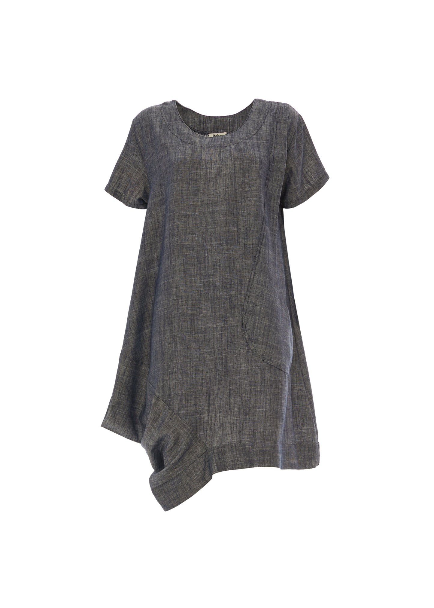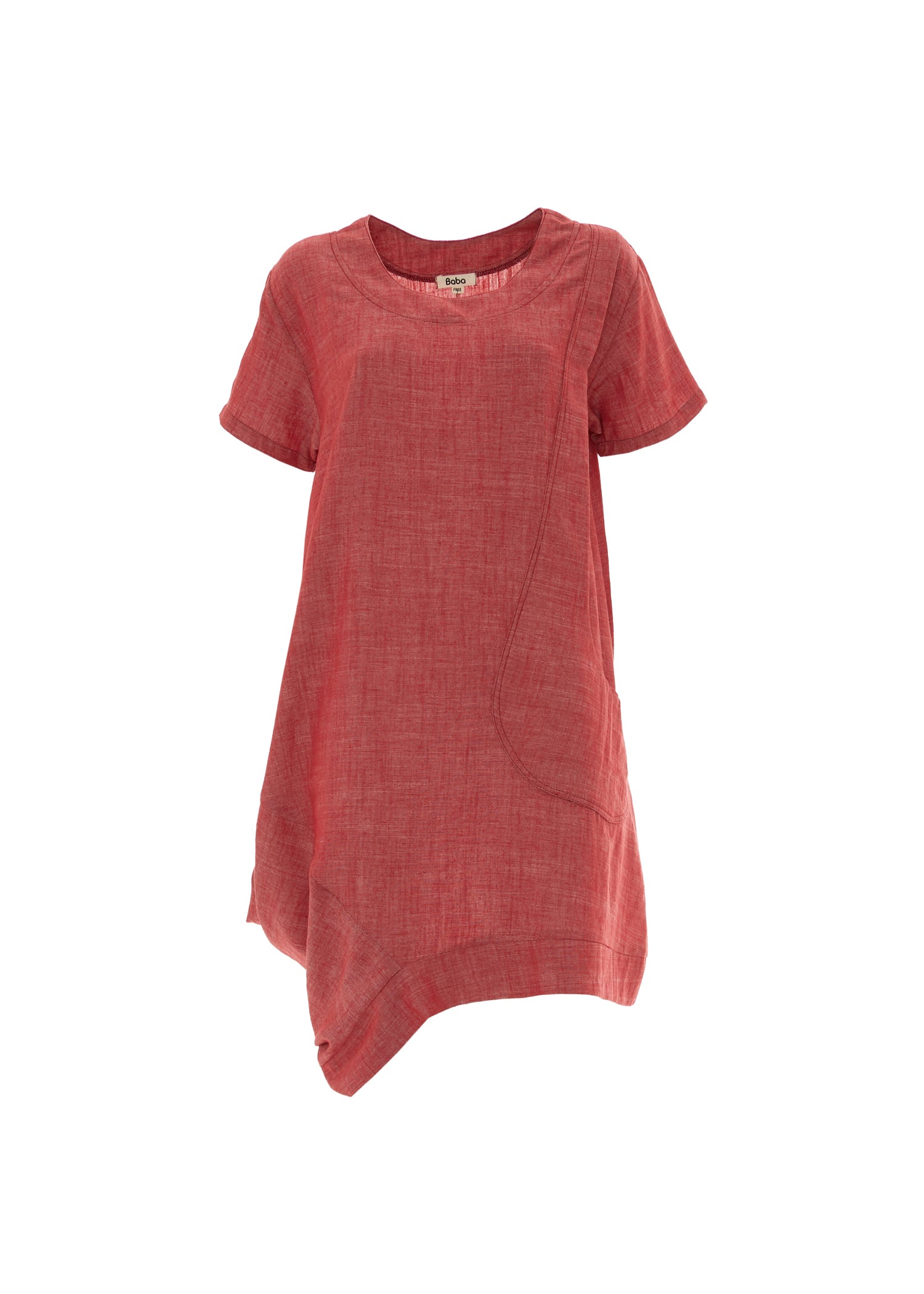 Vestito dalla linea curvy di Baba Design dal taglio largo e asimmetrico, ideale per valorizzare ogni silhouette. Pratica tasca anteriore. Comfort e stile si fondono in un capo versatile per ogni occasione.