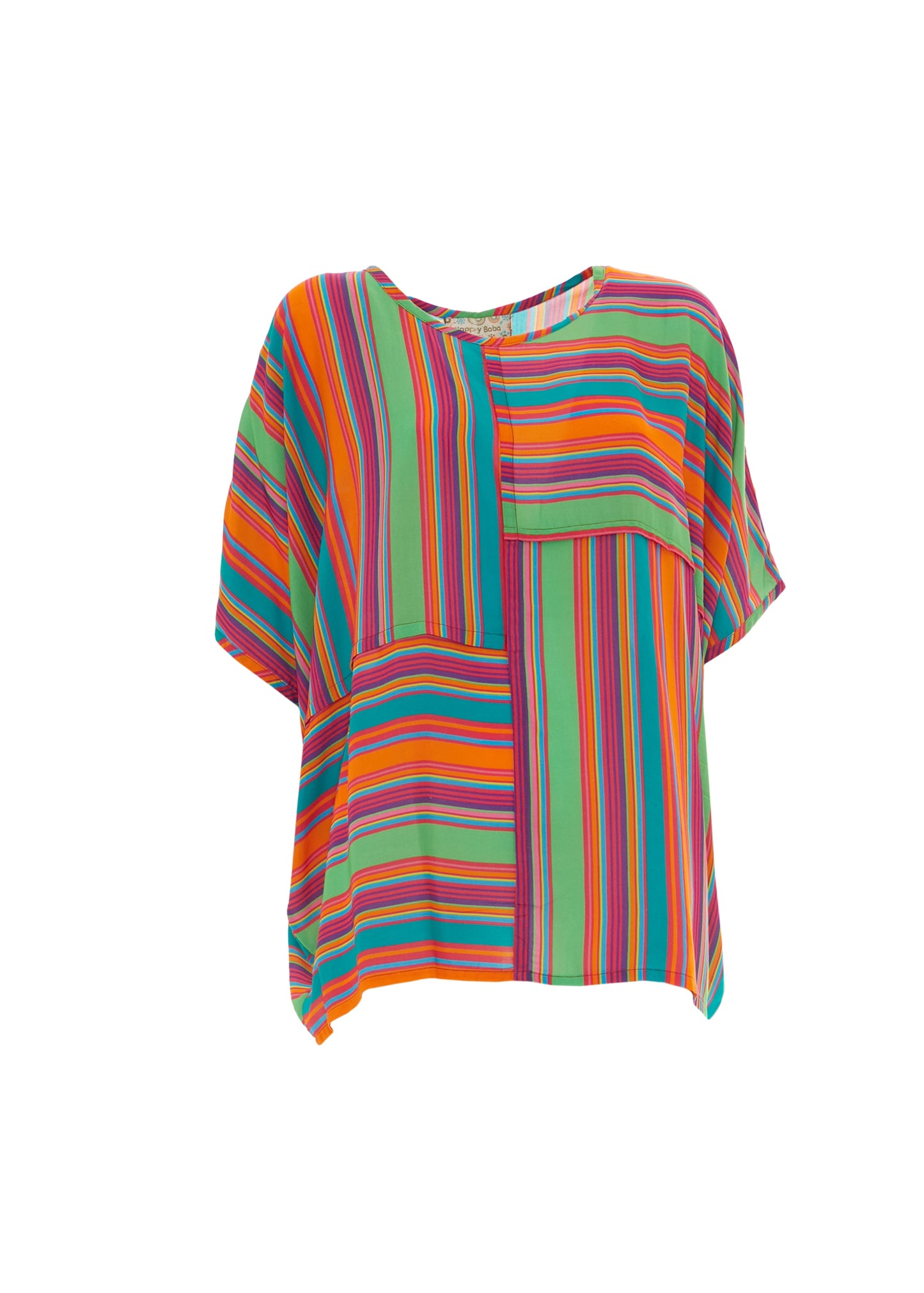 Maglia in cotone della linea curvy di Baba Design, con taglio largo e maniche a 3/4. Il pattern a righe offre un look casual e confortevole. Ideale per outfit quotidiani versatili.
