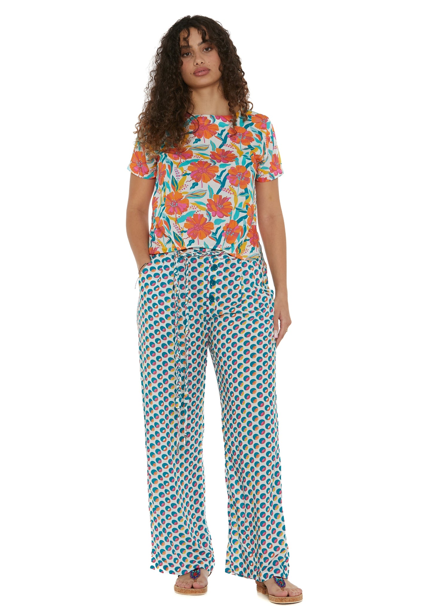 Maglietta della linea curvy Baba Design in fresco cotone. Modello con manica corta e scollo rotondo, impreziosita da un elegante pattern floreale. Ideale per la stagione estiva, garantisce comfort e freschezza per ogni occasione.